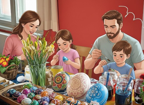Traditionelles Ostereierverzieren und -verkauf