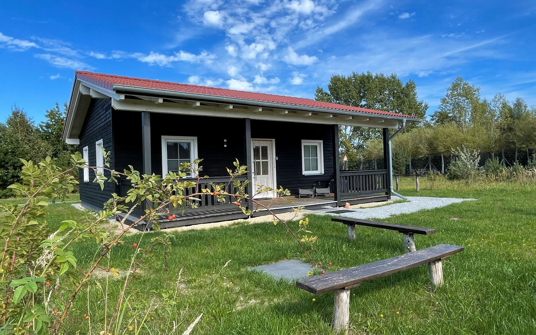 - Ruhe und Entspannung in der Natur auf unserem Gelände. Jedes Haus hat eine Größe von 86 m² inkl. einer großen überdachten Terrasse. Kostenlose Parkmöglichkeiten    befinden sich auf unserem Gelände in unmittelbarer Nähe Ihres Ferienhauses.